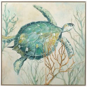 The Alanton framed canvas completes any coastal space with its sea turtle swimming through coral reef. Wrapped in a sleek silver frame for an elegant appeal.Read More