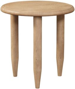 The round top and slim, tapered legs offer a sleek, contemporary look that complements a variety of styles. Perfect for any space, this end table combines style and functionality with a natural, inviting appeal.