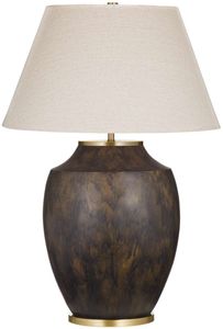 The Ashe Table Lamp blends modern traditional style with a rich brown finish and classic form. The linen-style shade complements the sculptural base, offering a warm, refined glow that suits both transitional and traditional spaces.Read More