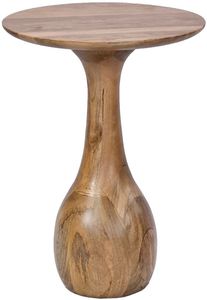 The sculptural charm of this solid wood accent table brings warmth and artistry to any space. Featuring a smooth round top and elegantly curved pedestal base, it highlights the natural beauty of the wood’s grain for a timeless, organic look.Read More