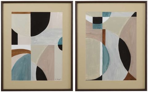This set of two prints are signed by the artist and framed in a 1" wood tone frame with a celery matboard. Abstract print in a modern design. Made in the USA.Read More