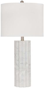 The Gabriella Table Lamp showcases timeless elegance with a contemporary edge. Its white and grey marble base features refined fluted detailing, offering sculptural appeal and natural luxury. Topped with a clean white drum shade, this piece brings understated sophistication to any setting.Read More