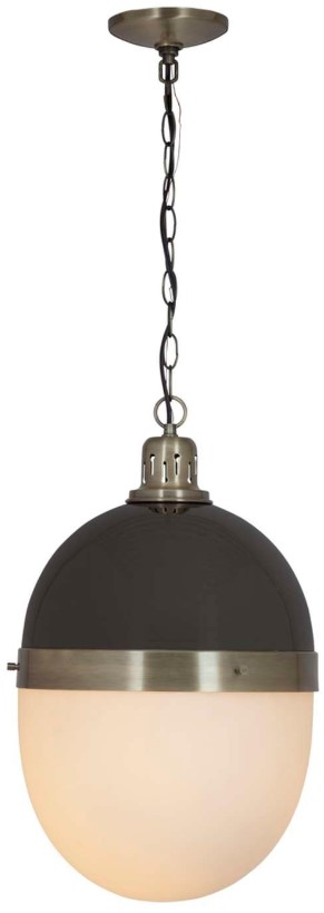 The Garfield pendant in blackened nickel with antique brass details has an acorn shape with frosted glass globe. With its beautiful design, this piece is sure to make a statement in your home.Read More