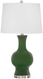 The Leithen Table Lamp blends traditional charm with a modern edge, featuring a rich green base with a crackled texture that brings depth and character to any space. Topped with a crisp white tapered drum shade, it offers a clean contrast that enhances its timeless appeal.Read More
