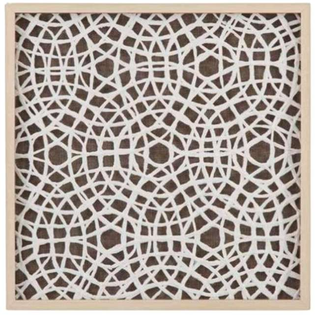 Lined Wall Art is a shadow box accentuated with a rice paper-like brown mat and a circular radiating pattern of woven white rattan with a natural blonde molding. This piece of art is hand-painted by a skilled artist lending itself to a unique technique and will vary slightly.Read More