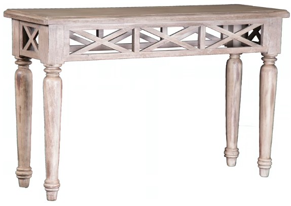 Gather around with this sofa table from Capris Furniture, It features an aged white finish and has wonderful eye-catching design. Make a bold statement by incorporating this furniture into your home.Read More