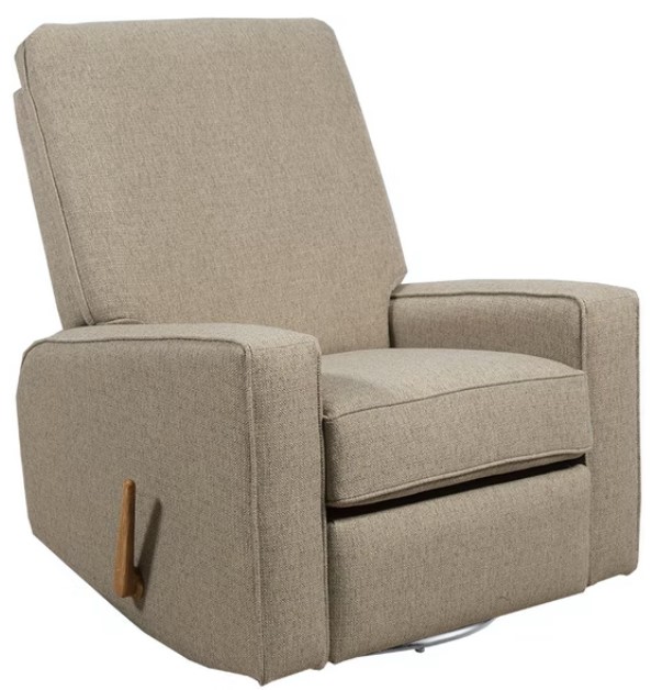 Elevate your living room decor with the Swivel Recliner Glider upholstered in beige fabric finish. Add a unique and eye-catching style to your home by incorporating this recliner into your living space.Read More