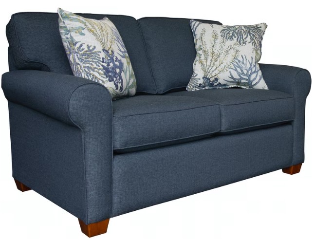 As shown, this Loveseat upholstered in dark blue fabric and pyramid legs in Walnut finish from Capris Furniture is cozy that will be perfect to elevate your living room space. Add elegance and beauty by incorporating this furniture into your home.Read More