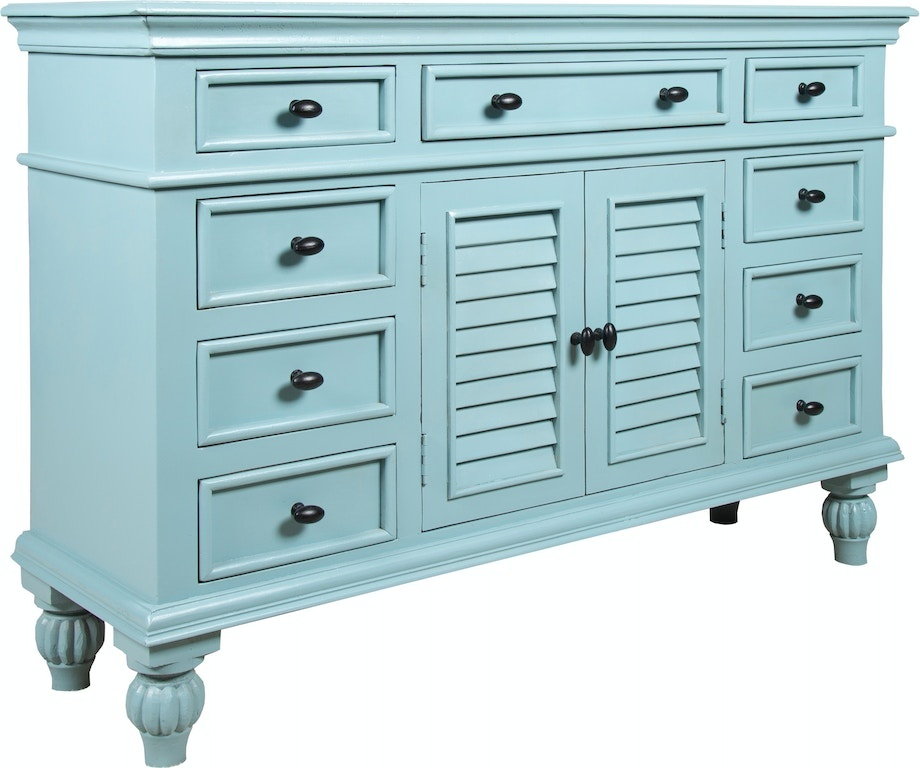 Ignite delight with teal brilliance! The Capris® Furniture Server exudes captivating charm in its distinctive teal finish. It has nine drawers and two doors and effortlessly combines functionality and style. Surely transform your home into a focal point of elegance.Read More