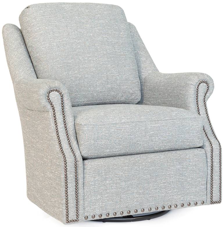 This exquisite chair is designed to bring joy to any living space, making a bold statement in your living room. Featuring a loose pillow inside the back and elegant nailhead trim, it's the perfect blend of style and luxury. Redefine relaxation with the Smith Brothers 562 Swivel Glider Chair today.Read More