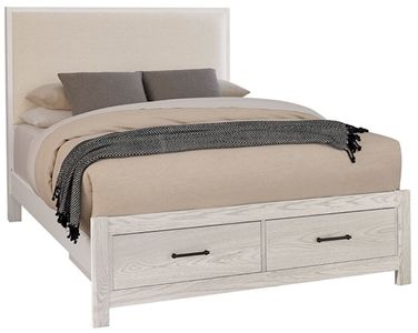 Wood trim upholstered storage bed offers a tailored, contemporary appeal. Features an upholstered headboard with oak wood trim covered in ivory cream performance fabric. It is easily cleanable, stain-resistant, and durable enough to withstand the wear and tear of everyday life.Read More
